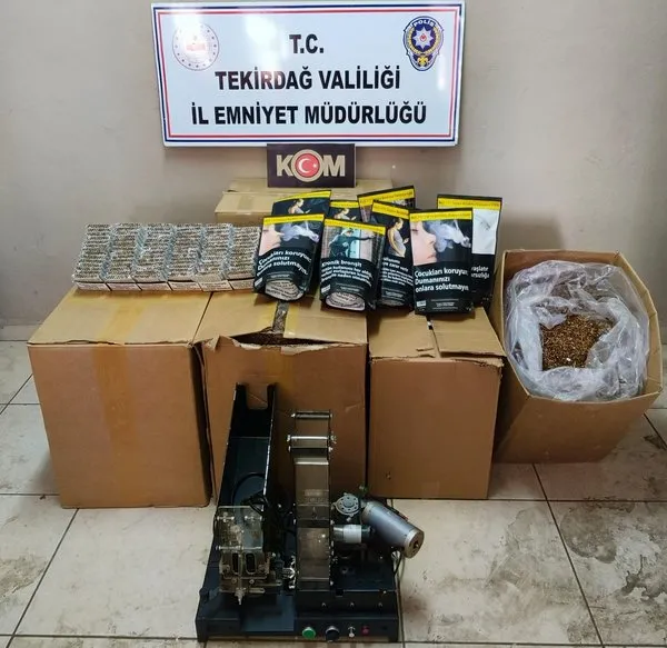 Tekirdağ İl Emniyet Müdürlüğü KOM Şube Müdürlüğü ve Saray İlçe Emniyet Müdürlüğü ekipleri, tütün mamulleri kaçakçılığının engellenmesine yönelik yürütülen operasyonlar çerçevesinde, Süleymanpaşa, Çorlu ve Saray ilçelerinde gerçekleştirdiği aramalarda önemli bulgulara ulaştı. Yapılan çalışmalarda, 2 işyeri ve 1 ikamette 58.780 adet dolu ve boş makaron, 476.700 gram kıyılmış tütün, 880 adet sigara sarma kağıdı ve 1 adet makaron dolum makinesi ele geçirildi. Olayla ilgili olarak 3 şüpheli hakkında yasal işlemler başlatıldı.