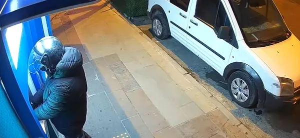 Güvenlik kameralarındaki görüntülerde, ATM'ye gelen kasklı bir kişinin, elindeki tornavida gibi aletlerle hırsızlık yaptığı anlaşıldı. Şüpheli, ATM'nin para bölmesini tornavidayla açarak içerideki paraları çaldı ve olay yerinden hızla uzaklaştı.