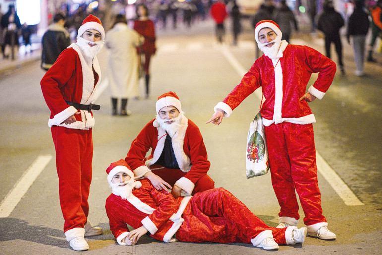 Başkenti Noel Babalar sarhoş etti.