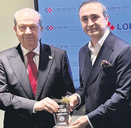 Alpaslan Düven, ödülünü KKTC'nin 5. Cumhurbaşkanı Ersin Tatar'dan aldı.