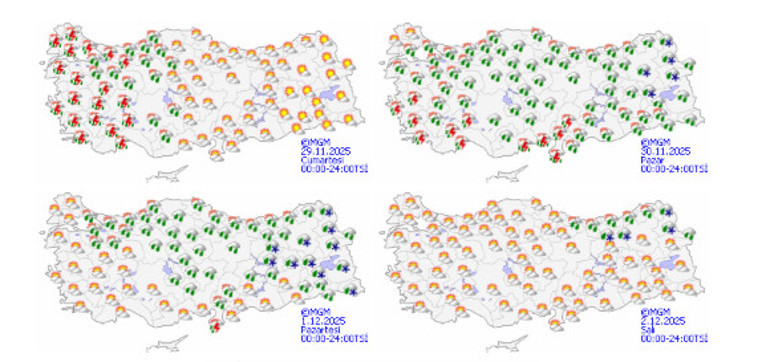 Önümüzdeki hafta ise Türkiye genelinde parçalı ve çok bulutlu bir hava durumu öngörülüyor.