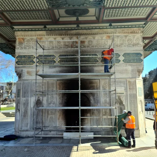 VAKIFLAR GENEL MÜDÜRLÜĞÜ TARİHİ ÇEŞMENİN BAKIMI İÇİN İSKELE KURDU
