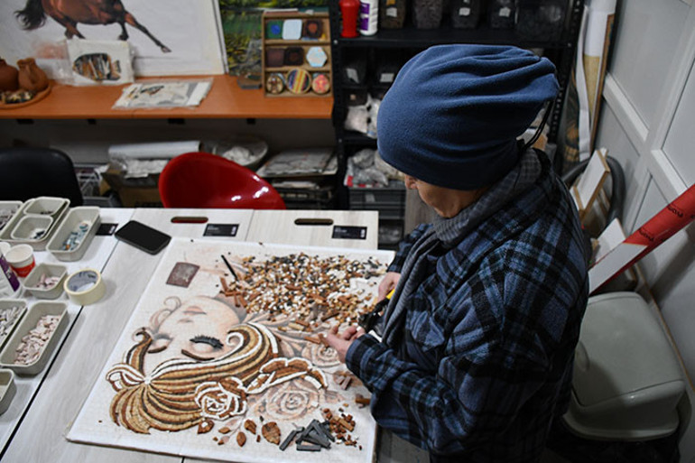 Aynur, mozaik tekniğini okulda öğrendiğini ifade etti.