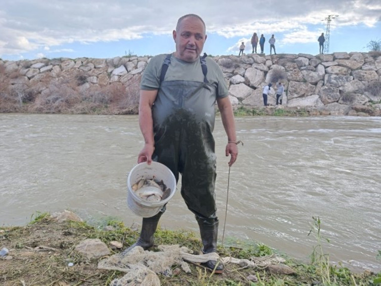 Güzel hava ile birlikte çay kenarına gelen bazı vatandaşlar, bir yandan güneşin tadını çıkarırken diğer yandan suyun içine girerek balık avlayanları izledi.