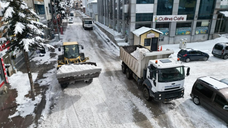Gerçekleştirilen çalışmalar çerçevesinde, birikmiş kar yığınları iş makineleriyle toplanarak, kamyonlarla ilçe dışındaki boş alanlara taşınıyor. Belediye ekipleri, 2 gün içinde yaklaşık 600 kamyon karı şehir merkezinden kaldırdı. Kar taşıma işlemlerinin, yolların genişletilmesi ve buzlanma riskine karşı hayati öneme sahip olduğu ifade edildi.